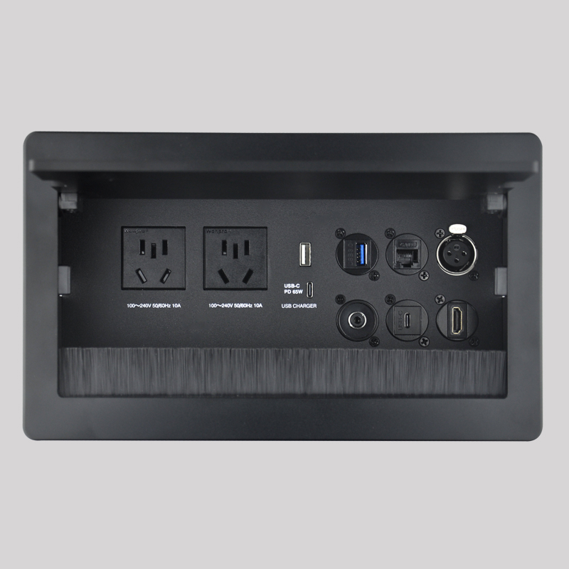 ?JS-Z300+ 系列可藏式接線盒提供了一個(gè)整潔、緊湊、簡單的連接解決方案;采用掀蓋式設(shè)計(jì),隱藏安裝,使面板與桌面保持齊平,質(zhì)優(yōu)且價(jià)廉,供簡易辦公連接使用。