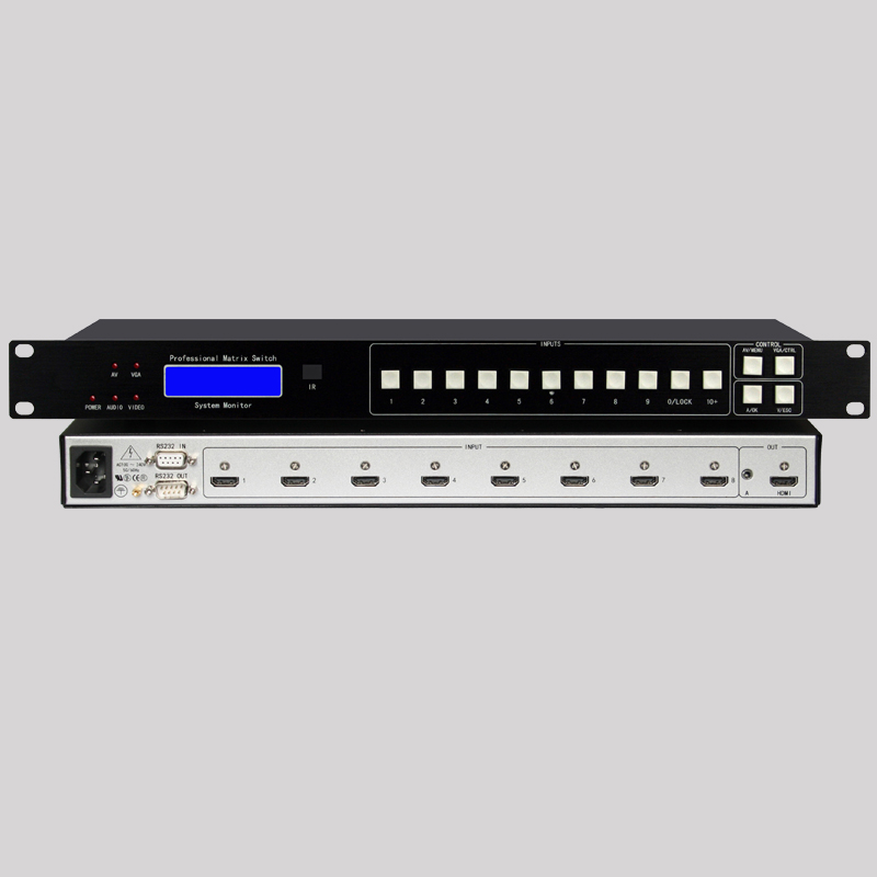?HDMI加音頻切換器系列8路進(jìn)1路出針對超高清視頻信號傳輸主流化的應(yīng)用環(huán)境開發(fā)了4K*2K HDMI+A系列切換器,該系列切換器采用多路進(jìn)單路出的架構(gòu)模式,通過多種控制方式管理應(yīng)用環(huán)境中音視頻信號的輸入輸出。產(chǎn)品外觀端莊大方,質(zhì)感性較強(qiáng);硬件芯片組性能優(yōu)越穩(wěn)定、切換處理速度快捷、收發(fā)分辨率可達(dá)4K*2K/30Hz、發(fā)送與接收距離均可達(dá)30米(1080P/60Hz)、視頻信號傳輸質(zhì)量無失