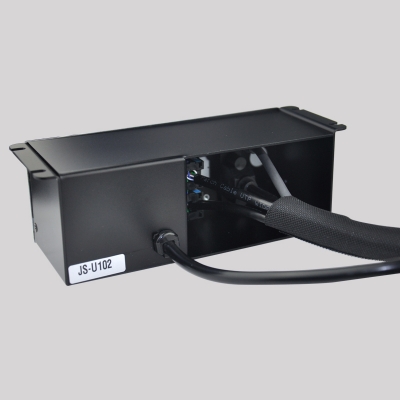 JS-U102系列可藏式接線盒提供了一個(gè)整潔、緊湊、簡(jiǎn)單的連接解決方案,U10系列被設(shè)計(jì)成能夠安裝在臺(tái)下面、側(cè)部,可以保持臺(tái)面整體性,采用吊裝式結(jié)構(gòu)設(shè)計(jì),安裝便利(只需4個(gè)螺絲固定即可),盒體材質(zhì)選用2mm鋁鎂合金,表面采用氧化、拉絲多道工序技術(shù)處理,輕巧、美觀、大方。