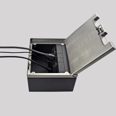 JS(金視)系列可藏式接線盒可以完美的展現(xiàn)線纜及接口的隱藏,且操作比較簡單,通過按壓(或掀起)接線盒表面面板來實現(xiàn)彈開和閉合,閉合后所有接口都隱藏起來,各種線纜可以有序的隱藏在接線盒后面,接線盒面板表面與桌面保持水平。