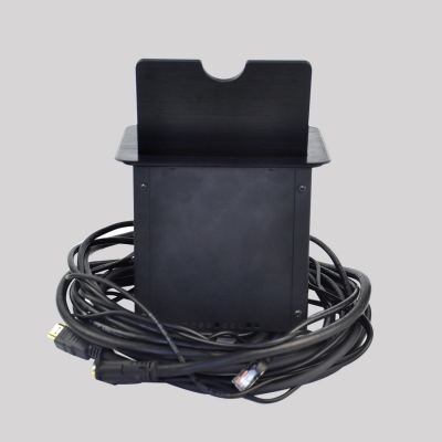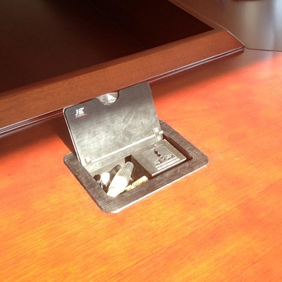 JS-4系列可藏式接線盒提供了一個整潔、緊湊、簡單的鏈接解決方案。4系列接線盒使用時只需掀起內(nèi)面板,隱藏在內(nèi)的線纜展露出來,抽拉出線纜連接號誰被后即可使用,使用完畢后把線纜放回盒內(nèi),閉合面板,各種接口隱藏起來,隱藏后的接線盒與平臺保持水平。